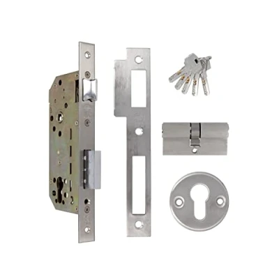 Description: Mortice Lock for Wooden Doors with Locking Shackle, Square Edge. Reversible Stainless Steel Door Handle Includes safety cylinder model 9850 60 (30-30) and collarbone model 22 Details: distance between handle nut and cylinder holder: 85 mm. Input: 50mm Door handle for square 8 mm. Closed housing and mechanism made of bichromated steel. Chrome plated steel locking lever. Shift: 20mm (2 turns) AMIG Mod.9850 6 pin security cylinder and anti-drill pin. Keyring Mod. 22 (58 mm). Application: Perfect for installation in wooden entrance doors, inside or outside. High security, ideal for places with high frequency such as houses, locations, utility rooms or garages. International products have separate terms, are sold from abroad and may differ from local products, including fit, age ratings, and language of product, labeling or instructions., Weight: 2.01502507468 pounds, Manufacturer: Amig