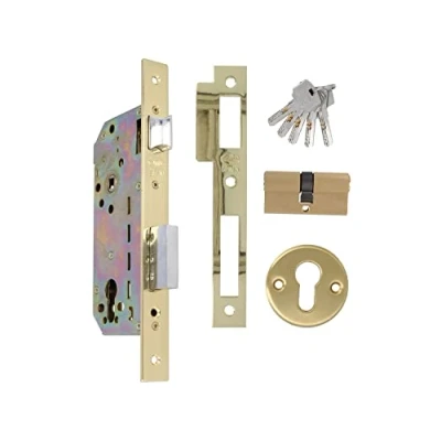 Amig Brass Plated Mortice Lock 340 5 Lever Security Reversible Handle Anti Drill Pin Ideal for Wooden Doors EN 12209:2004 Approved Colourful, Steel