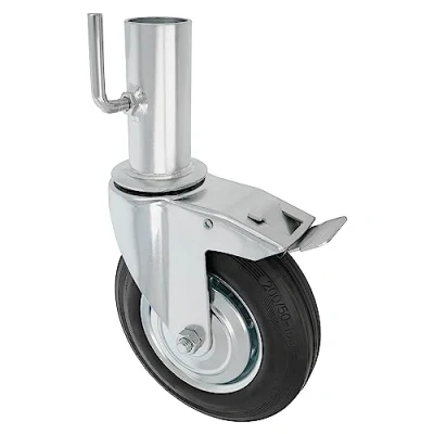 Amig Female Scaffold Wheel with Brake Ø200 mm Metal Core and Rubber Band Roller Bearings Specially Designed for Industrial Use Black