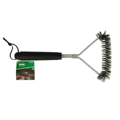 GRILL BRUSH This cleaning accessory for grills is the essential tool to keep grill grates, grills or smokers in perfect condition effortlessly. Useful for cleaning both hot and cold cooking grates. Essential accessories: this cleaning brush is the perfect tool for cleaning the grill or grill grate. Made of steel wire bristles, a material characterized by its high heat resistance and moisture resistance. Cleans effortlessly: the steel brush effortlessly removes stubborn dirt between the grooves of the grill grate, removes meat, vegetable or fish residues and grease from the grill grate or grill plate without damaging the grill. Practical and comfortable: with its non-slip rubber handle, it can be used comfortably and safely. The triangular shape allows you to easily reach all corners of your cooking grate. Commitment: With almost 10,000 products available, AMIG has been offering products of the highest quality and reliability in the fields of locksmithing, DIY, ironware, fittings, gardening, household goods, electricity, professional line and occupational and safety protection for over 80 years.