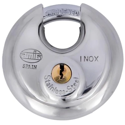 Amig Model 350 Disc Padlock Stainless Steel Anti Rust Waterproof & Outdoor Resistant Includes 2 Keys Suitable for Gates Locks, Steel, 70 mm, Treated