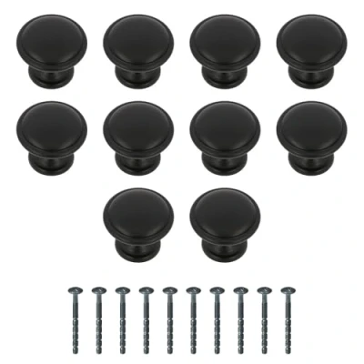 Amig Pack of 10 Cabinet Knobs Diameter Ø28 mm Matte Black Made Zamak for Kitchen and Bathroom Drawers Cabinets with Modern Decorative Style Mod. 804