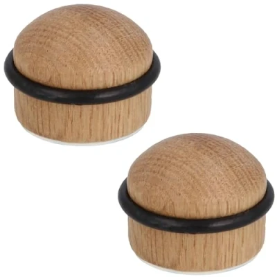 Amig Pack of 2 Self Adhesive Door Stops Diameter 35 x 29mm Model 412 Oak Finish Floor Fixing Includes Screws + Wall Plugs for Installation