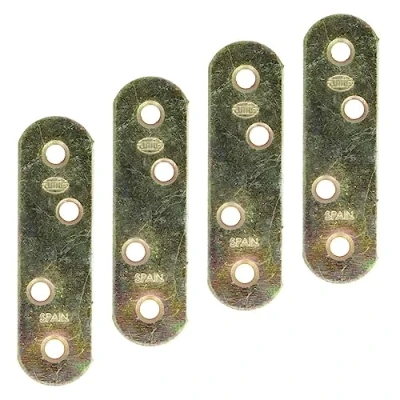 Amig Pack of 4 Bichromated Steel Reinforcement Plates Mod.2 Flat Union Plate for Mounting or Assembly Wood Furniture Dimensions: 60 x 16 1.5 mm Round Edge