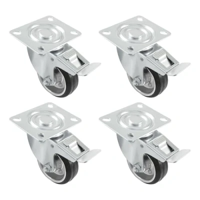 Amig Pack of 4 Casters With Brake For Furniture Ø 125 mm Swivel Mounting Plate Maximum Weight 120 kg Moving Heavy Roller Bearings Metal Core Black Rubber
