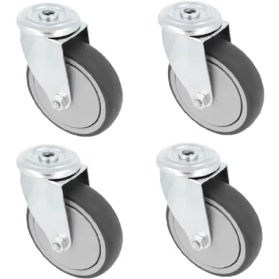 Pack of 4 swivel wheels: castors with holes. Designed with a grey TPR rubber band. Contains a polypropylene core. FUNCTIONALITY: Ideal for moving heavy furniture, industrial equipment, transport carts, shelving etc. They are also designed with a rubber band which gives good traction and at the same time protects the floor from scratches. DETAILED TECHNICAL INFORMATION: The wheel diameter is 100 mm and can withstand a weight of up to 110 kg. Hole diameter is 12.5mm UNIVERSAL: This set of 4 wheels features a 360° swivel platform, which provides stability and safety to the load. These wheels are designed for universal use on medium loads. COMMITMENT: With nearly 10,000 products available, AMIG has more than 80 years manufacturing and distributing locksmith products, DIY, hardware, hardware, gardening, household and household appliances, electricity, professional line and occupational protection and safety. All of the highest quality and reliability.