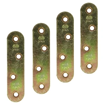 Amig Pack of 4 Mod.2 Dichromated Steel Reinforcement Plates Flat Plate Union for Mounting or Assembling Wooden Furniture Dimensions: 80 x 19 2 mm Round Canto