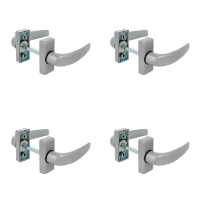 PACK OF 4 ROSETTE HANDLES: Pack of 4 aluminum handle sets with round rosette, suitable for interior or exterior doors; featuring a simple and modern design, with a comfortable lever that fits the hand and prevents slipping; it is recommended to clean with a damp cloth. DETAILS: Made of aluminum, a durable material known for its good mechanical and tensile strength; dimensions: 121 x 72 mm; functional and ergonomic handle with a silver finish; screws included. USES: Suitable for interior or exterior doors, whether for passage or entry. Ideal for bathrooms, bedrooms, offices, and any room in the home. Its simple and elegant design allows it to blend with any style of décor. EASY INSTALLATION: The handle set includes all the necessary screws for proper installation. Assembly is easy, even for those with no DIY experience. COMMITMENT: With nearly 10,000 products available, AMIG has over 80 years of experience manufacturing and distributing locksmithing, DIY, hardware, fittings, gardening, household goods, electrical items, professional tools, and occupational safety and protection products — all of the highest quality and reliability., Weight: 4.3431065614 Pounds, Manufacturer: Amig