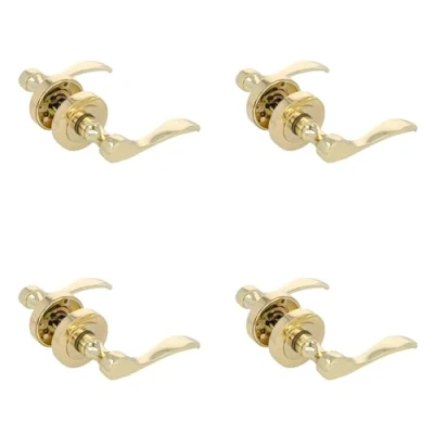 Amig Pack of 4 Rosette Handle Sets, Model Yaltarz, Made Varnished Brass Plated Steel, Size: 52 mm, 6 mm Spindle, Ideal for Interior or Exterior Doors, Modern Design