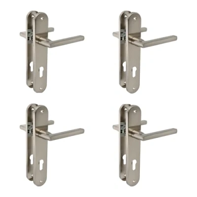 Amig Pack of 4 Steel Backplate Door Handle Sets Model MAI PB85 240 x 45 mm 8 Spindle Elegant and Simple Design with Keyhole Brushed Nickel Aluminum