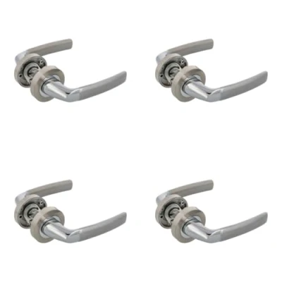 PACK OF 4 ZAMAK ROSETTE DOOR HANDLES: Pack of 4 aluminum handle sets with zamak rosette and ergonomic curved lever, featuring a simple, elegant, and modern design. Thanks to the lever’s position, it fits comfortably in the hand and prevents slipping. DETAILS: Handle length: 130 mm. Rosette diameter: 52 mm. 8 mm spindle. Functional and ergonomic handle with a brushed nickel finish. Includes all necessary screws for installation. USES AND MATERIALS: Ideal for interior or exterior doors, whether for passage or entry, as well as for rooms or any area of the home. Made of aluminum, a metal known for its resistance to rust, corrosion, and outstanding durability. VERSATILE: Its modern, clean-lined design makes it suitable for most décor styles. Reversible, it can be installed on both right-handed and left-handed doors. COMMITMENT: With nearly 10,000 products available, AMIG has over 80 years of experience manufacturing and distributing locksmithing, DIY, hardware, fittings, gardening, household goods, electrical items, professional tools, and occupational safety and protection products — all of the highest quality and reliability., Weight: 3.4612575134 pounds, Manufacturer: Amig