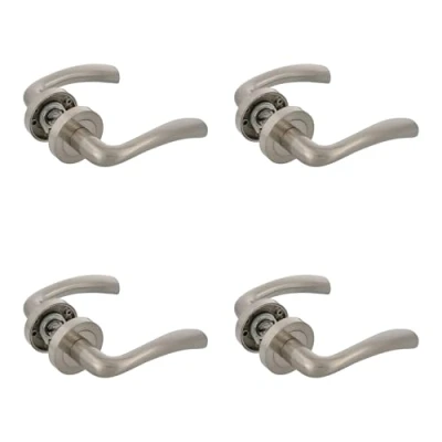 PACK OF 4 ROSETTE HANDLES: Pack of 4 aluminum handle sets with round rosette, suitable for interior or exterior doors. Featuring a simple and modern design, with a comfortable lever that fits the hand and prevents slipping. It is recommended to clean with a damp cloth. DETAILS: Made with Aluminium, hard material used for its good mechanical or tensile strength. Diameter of 52 mm. With rosette and functional and ergonomic crank finished in silver. Includes screws. USES: Ideal for use with locks on interior or exterior doors, whether for passage or entry. Perfect for bathrooms, bedrooms, offices, and any room in the home. Its durable materials ensure long-lasting performance. VERSATILE: Its modern and simple design allows it to blend with most décor styles. Reversible, it can be installed on both right-handed and left-handed doors. COMMITMENT: With nearly 10,000 products available, AMIG has over 80 years of experience manufacturing and distributing locksmithing, DIY, hardware, fittings, gardening, household goods, electrical items, professional tools, and occupational safety and protection products — all of the highest quality and reliability., Weight: 3.8139971326 pounds, Manufacturer: Amig