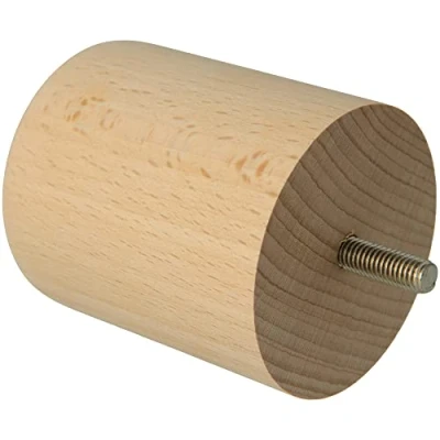 amig Round Furniture Leg, Beech Wood Leg with Natural Finish, Replacement Legs for Sofas, Beds, Tables, Fixing: Metal Spike of Metric 8, Measurements: 68 x 80 mm