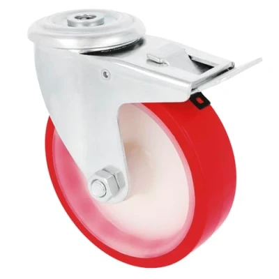 Pack of 4 swivel wheels: swivel castors with hole and brake. Designed with a red PU band. Contains a white nylon core FUNCTIONALITY: Ideal for moving heavy furniture, industrial equipment, transport carts, shelving, etc. In addition, they are designed with a polyurethane band that ensures good traction and at the same time protects the floor from scratches. Detailed technical information: The diameter of the wheel is 120 mm and can withstand a weight of up to 170 kg. Hole diameter: 12.5 mm. UNIVERSAL: This set of 4 wheels is equipped with a 360º swivel plate, which ensures stability and safety to the load. These wheels are designed for universal use with medium loads. COMMITMENT: At AMIG we have over 80 years of experience in manufacturing and distributing high quality and reliable products for locks, DIY, hardware, accessories, gardening, household goods, electricity, professional line and occupational protection and safety., Weight: 1.81219979364 Pounds, Manufacturer: Amig