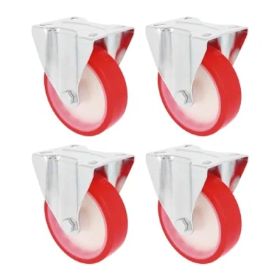 Amig Set of 4 Fixed Wheels Diameter 100 mm Metal Plate Maximum Weight 120 kg for Moving Heavy Furniture or Household Appliances Roller Bearings White Nylon Core Red Polyurethane