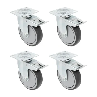 Amig Set of 4 Furniture Brake Castors Diameter 100 mm Rotating with Mounting Plate Maximum Load 110 kg For Moving Heavy Roller Bearings Plastic Core Grey Rubber