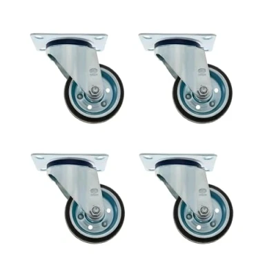 Amig Set of 4 Furniture Castors Diameter 100mm Swivel with Mounting Plate Maximum Weight 90kg for Moving Heavy Roller Bearings Metal Core Black Rubber