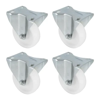 Amig Set of 4 Rigid Castors with Metal Bracket Diameter 100 x 32 mm Maximum Load 200 kg for Moving Heavy Furniture Roller Bearings Nylon Core White