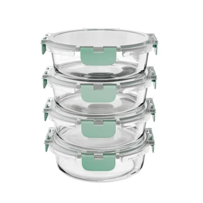 Amig Set of 4 round airtight Glass food containers Capacity: 400 ml 130 x 52 mm for microwave, oven, freezer and dishwasher Green colour