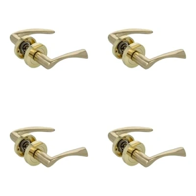 Amig Set of 4 Sets 2 Gold Door Handles Round Rosette Zamak Handle for Interior Doors Diameter Ø52 mm Screws Included