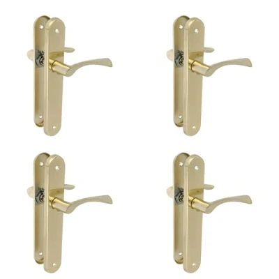 PACK OF 4 HANDLES: Pack of 4 sets of 2 handles with round rosette and zamak grip. Modern and elegant design, in a neutral colour that can be easily combined with any type of interior. Easy installation. Screws included. Details: Sign measures 237mm x 40mm. Crank:120mm Finish: Painted Brass For interior doors, apartment, bathroom, kitchen or any living space in the house. Materials: Made of steel and Zamak alloy. Steel is a material that stands out due to its robustness and long service life. Zamak is a robust material with good mechanical resistance and tensile strength as it is made of alloy with multiple metals. Commitment: AMIG has approx. 10,000 products and more than 80 years of experience in the manufacture and sale of products in the field of locksmith, DIY, ironware, horticulture, household and home as well as electrical and offers a professional range, protective equipment and accessories for work safety. Everything is of the highest quality and reliability. Commitment: At AMIG we have been providing and distributing high-quality products and reliability from locksmiths, DIY, hardware store, fittings, gardening, crockery and household, electrics, professional line and protection and work safety for more than 80 years., Weight: 1.47930177802 Pounds, Manufacturer: AMIG
