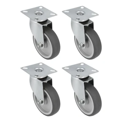 Amig Set of 4 Swivel castors for Furniture, Diameter 100 x 27 mm, with Stainless Steel Plate, Maximum Load 90 kg, Moving Heavy Polypropylene core, Black Rubber