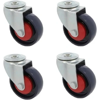 Amig Set of 4 Swivel Castors with Metal Bracket and Hole Diameter 100 mm Maximum Load 250 kg for Heavy Furniture or Industrial Trolley Ball Bearings Nylon Core Blue