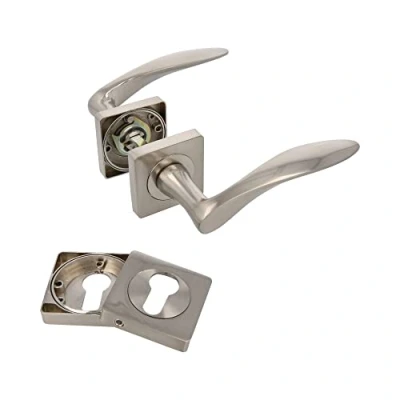 Amig Set of Door Handles Roche Model 128 x 64 mm with Keyhole Elegant and Simple Design Ergonomic Grip Handle Matte Silver Zamak