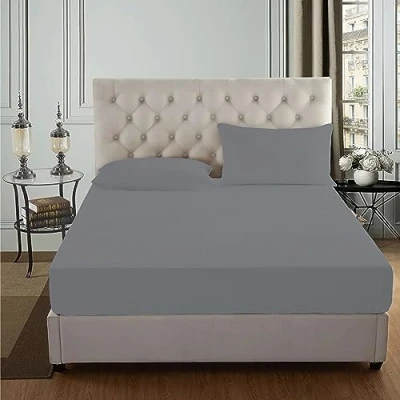 AmigoZone 100% Egyptian Cotton 200 Thread Count 25CM/10" Deep Fitted Sheet (Super King, Grey)