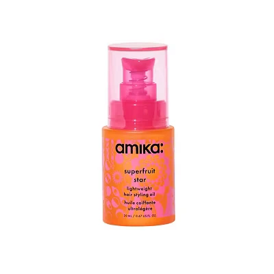 amika superfruit star lightweight hair styling + heat defense oil, protection, strengthen reduce breakage, smooth frizz, add glossy shine (20 ml)
