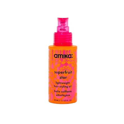 lightweight styling oil - unleash your superfruit power for hair that’s 7x stronger + 2x smoother.* this multitasking hair care hero smooths fine-to-thick hair without heaviness, offering a featherlight finish with the power of a hair serum for dry damaged hair. superfruit-powered nourishment - infused with sea buckthorn + silicones, this multitasker acts like a hair gloss + lightweight hair conditioner, helping support shine while strengthening strands. frizz control - clinically proven to reduce breakage by up to 86%* while offering heat protection up to 230°C, this hair treatment is the perfect lightweight conditioner for dry, damaged hair. how to use - prior to styling, add 1-2 pumps to damp or dry strands for smooth texture, curl definition + a mirror-like finish that rivals any hair moisturiser or hair syrup. all hair is welcome - amika is a Brooklyn-born hair care brand dedicated to celebrating individuality, creativity + clean ingredients, with every formula—including this hair serum for frizzy hair. all of our hair products are consciously crafted to deliver salon-quality results for every hair type + texture.