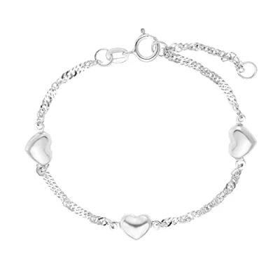 Adjustable children's bracelet (12+2 cm) with three cute hearts for girls Made from shiny 925 sterling silver Quality promise: A layer of rhodium protects the jewellery from tarnishing, is particularly kind to the skin and gives the accessory an incomparable shine.