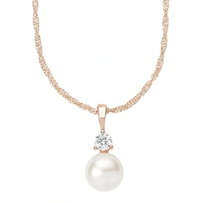 Elegant 45 cm long Singapore necklace with approx. 2 cm long pendant Made from rose gold plated 925 sterling silver With a white wax bead and a white zirconia (synth.)