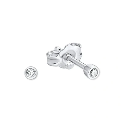 Very small round basic ear studs in 925 sterling silver With white zirconia (synth.) set in a bezel setting Quality promise: A layer of rhodium protects the jewellery from tarnishing, is particularly kind to the skin and gives the accessory an incomparable shine.