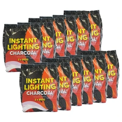 Includes 24 x 850g bags of Instant Light Barbecue Charcoal Cleaner and safer way to have a barbecue; Easily stored No need for firelighters or lighter fluid Ready to cook in 15 to 20 min (once the flames have died down); Rakes and tumbles well Cooks food evenly; Produces a good level of heat