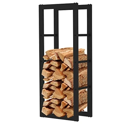 AMOS Metal Firewood Log Rack Stand Holder For Outdoor Indoor Fireplace Wood Storage Shelf, Black, 100 x 25 40CM