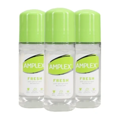 Fresh Scent: its dual anti-perspirant and deodorant properties eliminate sweat and odour whilst its just-showered fragrance leaves you smelling fresh and clean Alcohol-Free and Anti-Stain Formula: The alcohol and colourant-free, no-stain formula prevents your underarms from white and yellow deodorant marks on both light and dark fabrics Long-lasting: One application provides up to 24 hours of protection, so you can be worry and odour free Multi-Pack: Contains 3 x 50ml fresh deodorants to help your money and underarm freshness last longer Everyday Freshness: Amplex delivers reliable and effective every-day formulas that help you stay fresh, dry, and confidently odour-free