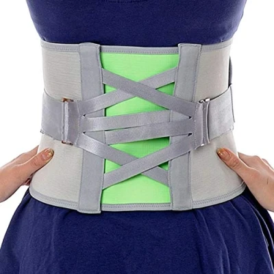 Support bar fixed is solid and reliable, with the use of a rigid support bar deformation cannot occur, sufficiently elastic flexibility in support bar. Velcro locking. Blended fabrics, silicone pad, built-in elastic support strips, buckles, Velcro, elastic band, ribbon, different types of components in accordance with the actual design is slightly different. Applicable to the tightening and stablizing damaged section and restricts movement and relieves pain to comply with adjuvant therapy. Back cross belt design, put on and take off freely, fit the waist perfectly. More suitable for losing weight, exercise and protection. Long time wearing is permitted. Material: Nylon and Spandex. 2 internal memory alloy support bars, provide fixation, support and restriction of movement for waist. Show the waist circumference with front scale.