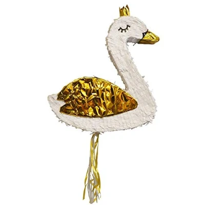 The glamorous swan pull pinata from Amscan is the perfect party fun for young and old The beautiful swan is in gold white, has a size of 46 x 40 x 7 cm and is made of paper and plastic An opening allows the swan to be filled with sweets or small gifts. Then the pinata must be hung so that the guests and the birthday child can pull on one of the strings hanging down. As soon as the right cord is caught, the previously filled contents rain on the floor and everyone can enjoy it The pinata swan is a beautiful highlight for a birthday or theme party Other beautiful decorative items and party accessories can be found in our brand shop. Click on the brand name Amscan below the product title, Manufacturer: Amscan