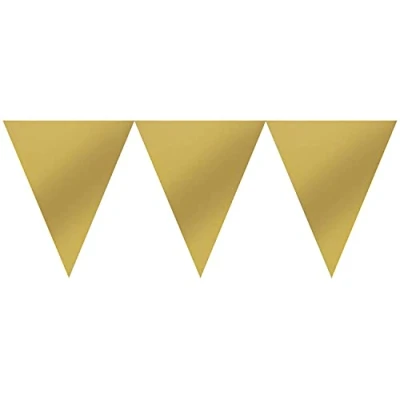 Package includes 1 Pennant Banner. This Pennant Banner adds more joy and happiness to your celebration. This product features Gold colored pennants connected together to create a beautiful banner. Hang this pennant banner on the walls or along the stair railing. Best used for Themed Celebrations. This product is made of quality materials and measures 4.5m banner length x 16cm drop triangle pennants., Manufacturer: amscan