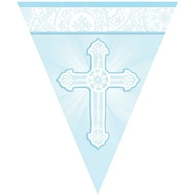 Package includes: 1 x pennant banner - 3.65 meters long Product features a pastel blue background behind an elegant cross Perfect for baptism, communion, or in any religious parties Made of high quality cardstock attached on string for easy hanging, Manufacturer: amscan