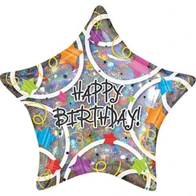 Package includes: 1 x happy birthday silver star foil balloon Product features colorful stars and fireworks in bright colors, with a fun greeting that reads "Happy Birthday!". Perfect for birthday celebrations. The item is made of foil.
