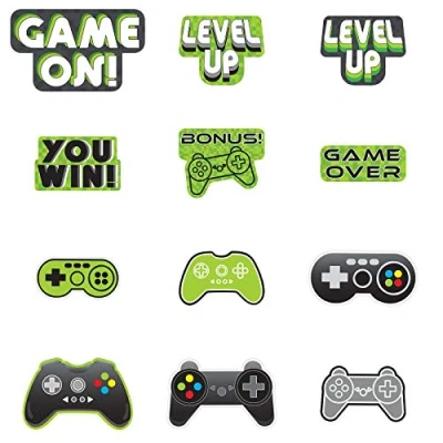 Ideal for any gamer's birthday party, these cut out decorations are sure to be a winner Don't forget to check out the rest of this cool Level Up range to kit out your entire party Pack includes 12 decorations Simply stick to walls or doors, Manufacturer: Amscan