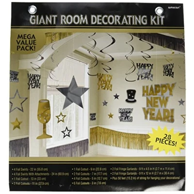 Bring in the new year with dazzling tableware, decorations and balloons! This bumper pack of hanging decorations will kit out your entire party! All in a decadent gold, silver and black finish. Includes 28 Pieces Please check out the product description below to see the entire kit contents., Manufacturer: amscan