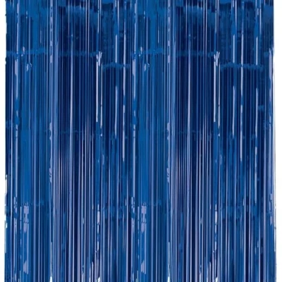 Royal blue foil hanging decoration in a metallic finish. Measures: 91cm x 2.43m Simply hang from doorways or windows to create a glistening party decoration. Alternatively, hang from walls to create a stunning photo backdrop., Manufacturer: amscan