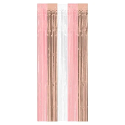Blush rose gold foil hanging decoration in a metallic finish. Measures: 91cm x 2.43m Simply hang from doorways or windows to create a glistening party decoration. Alternatively, hang from walls to create a stunning photo backdrop., Manufacturer: amscan