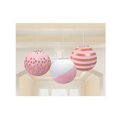 Amscan 242682 Lntrns Rnd Ppr Rose Gld/Blush 3 Pack