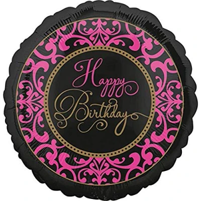 Package includes: 1 x fabulous celebration birthday foil balloon Product features a pink and gold script printed against a black background bordered with a pink damask design Perfect elegant and colorful decoration for birthday celebrations The item is made of foil