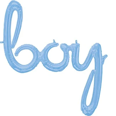 Would you like to decorate the baby shower with a very special foil balloon for the birth of a boy? Then this giant "Boy" balloon from Amscan is sure to be the perfect party accessory The shiny balloon is available in light blue. The word "Boy" is designed in script and has an impressive size of approx. 73 x 81 cm. You can combine it with other lettering balloons and, if desired, also make full sentences with it The striking balloon is made from a special foil, has a self-closing valve and comes unfilled. It can be filled with both air and helium and will last up to several weeks. When filled with air, the foil balloon should be attached to a rod. The lettering also has small foil tabs with holes for hanging. Using the included white ribbon you can attach the word very easily Create an extraordinary atmosphere at the baby shower. The foil balloon "Boy" is perfect as a decoration or as a gift More beautiful party items and costumes can be found in our brand shop. Click on the brand name Amscan below the product title, Manufacturer: Amscan