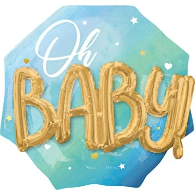 Looking for a great gift or decoration for the birth of a boy? Then this light blue 3D foil balloon "Oh Baby" by Amscan is just the thing for you. This octagonal balloon printed on both sides of the large balloon has a size of approx. 76 x 71 cm. It is decorated with colour gradient in the colours light blue, turquoise and mint green. There are small stars and hearts as well as the lettering "Oh" printed in white. The golden word "Baby" you will receive twice as separate balloons which can be attached to both sides of the large balloon. The 3D balloon is made from a special foil and has a self-closing valve and is supplied unfilled. It can be filled with both air and helium and will last up to several weeks when inflated. The 3D foil balloon "Oh Baby" is sure to be a gift or decoration at the baby shower More beautiful party items and costumes can be found in our brand shop. Click on the Amscan brand name below the product title., Manufacturer: Amscan